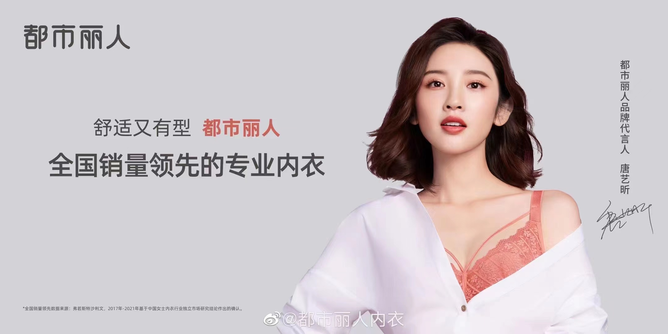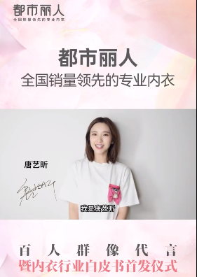 7月3日下午,「都市麗人」與中國紡織品商業(yè)協(xié)會內(nèi)衣委員會、京東服飾、前瞻產(chǎn)業(yè)研究院在重慶聯(lián)合發(fā)布《中國女性內(nèi)衣白皮書》(以下簡稱“白皮書”),發(fā)布會上,都市麗人宣布以演員唐藝昕領(lǐng)銜的百位女性成為新的代言人。