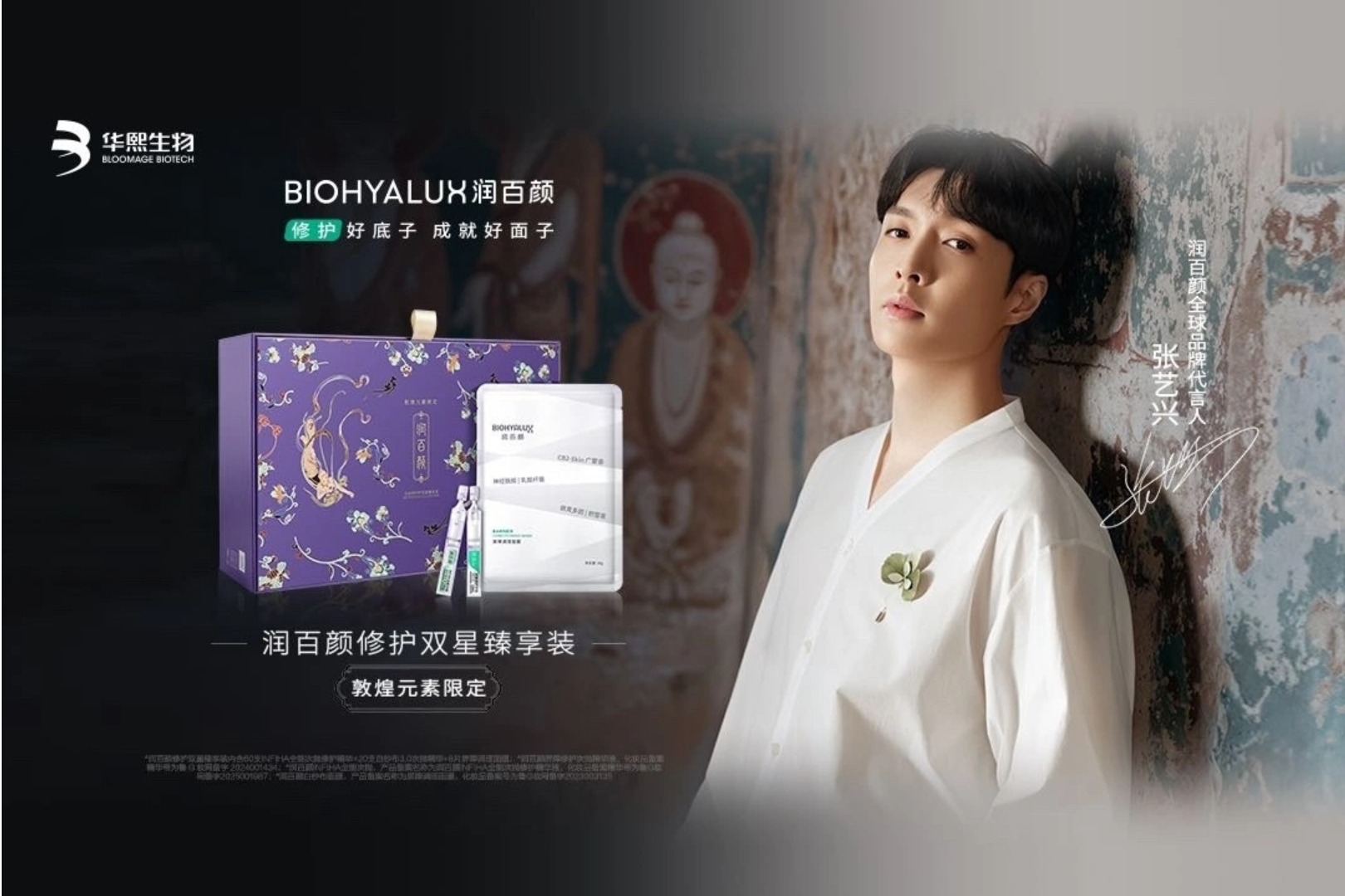 8 月 20 日,潤百顏官宣張藝興(明星代言公司)為首位全球品牌代言人。在舞臺(tái)上,張藝興以全能熱愛守護(hù)舞臺(tái)夢想;潤百顏同樣以修護(hù)之力守護(hù)肌底好狀態(tài)。此次雙方攜手,將圍繞敦煌文化共同開啟一場穿越千年的對(duì)話,揭曉「時(shí)光不蝕」的修護(hù)智慧。據(jù)悉,代言人同款「潤百顏雙星」禮盒現(xiàn)已上架各大平臺(tái)銷售,除了精美的敦煌元素外,禮盒內(nèi)含的 IHFIHA 全能次拋精華及白紗布次拋精華,也將雙效內(nèi)修外煥,一起「藝」修到底、內(nèi)外兼護(hù),成就每一寸肌膚之美。