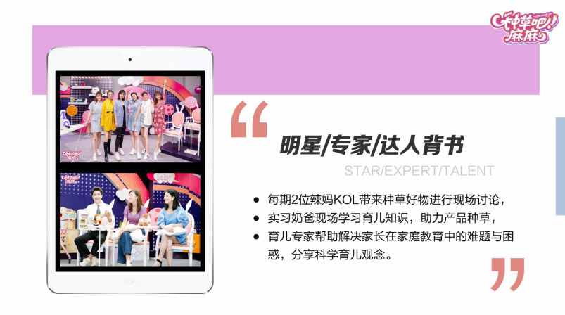 《種草吧麻麻》由王小牙團(tuán)隊(duì)全新重磅打造,是一檔以媽媽為核心的明星家庭生活種草分享類節(jié)目。