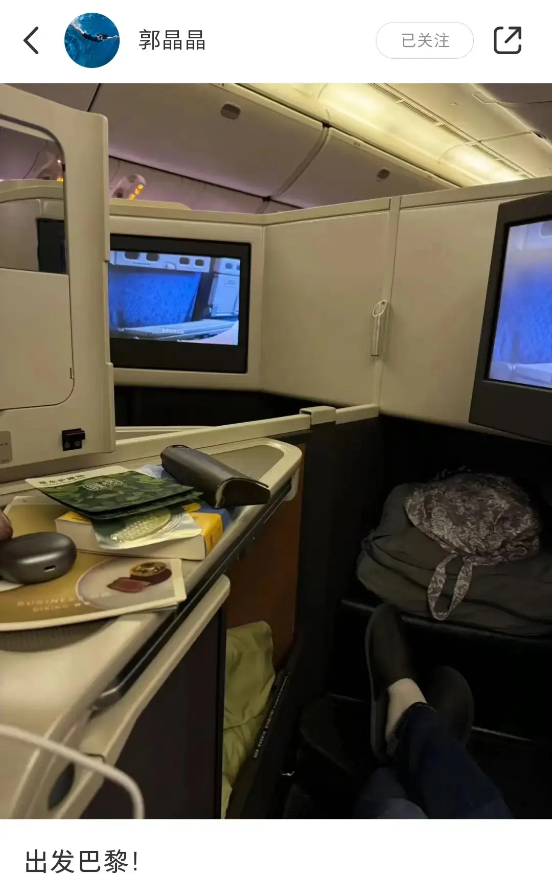 25日,郭晶晶(明星經(jīng)紀(jì)公司)在社交平臺上發(fā)文宣布“出發(fā)巴黎”,并配上了自己乘坐飛機的照片,狀態(tài)十分愜意。此前,郭晶晶在接受采訪時表示,自己會以跳水裁判的身份參與巴黎奧運會。