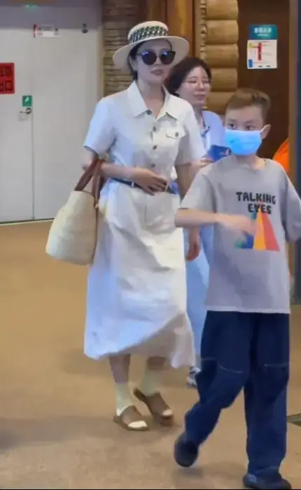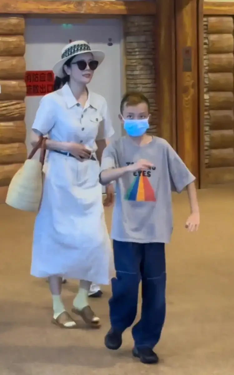 楊樂樂帶兒子出門游玩 9歲小沐沐眉眼神似汪涵