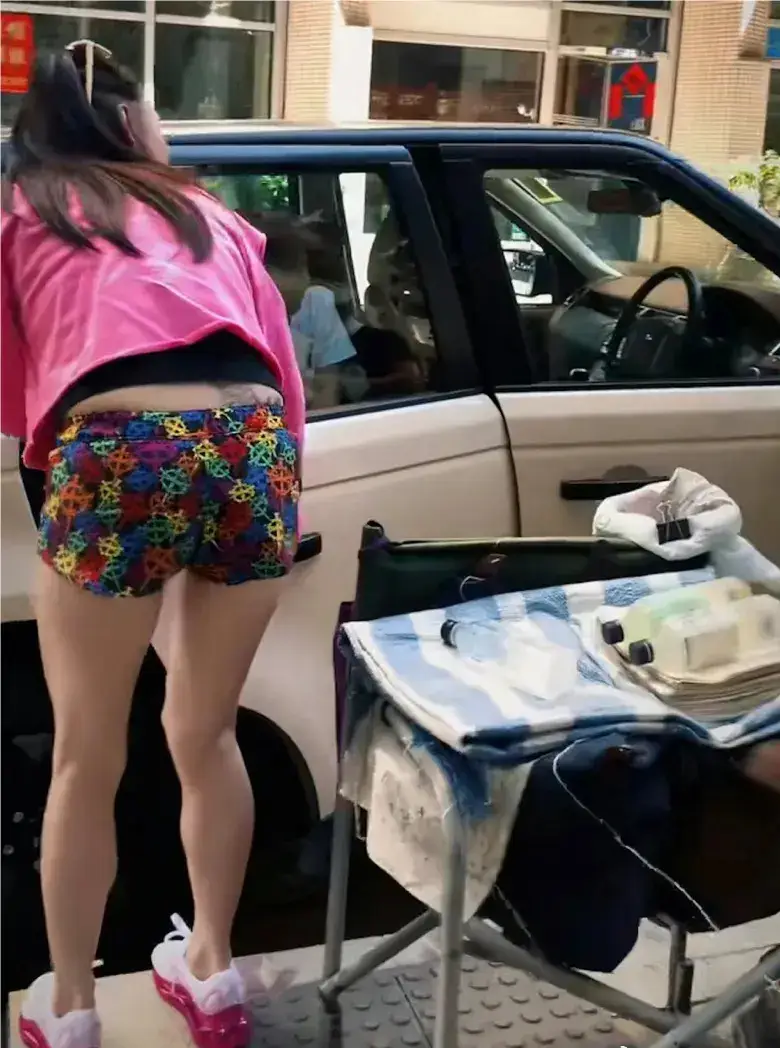 張柏芝給小兒子開車門。