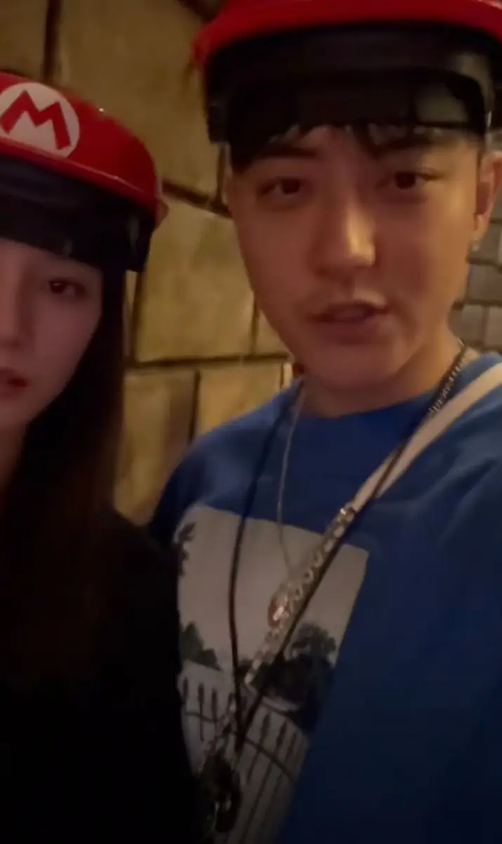 黃子韜和徐藝洋帶馬里奧情侶帽。