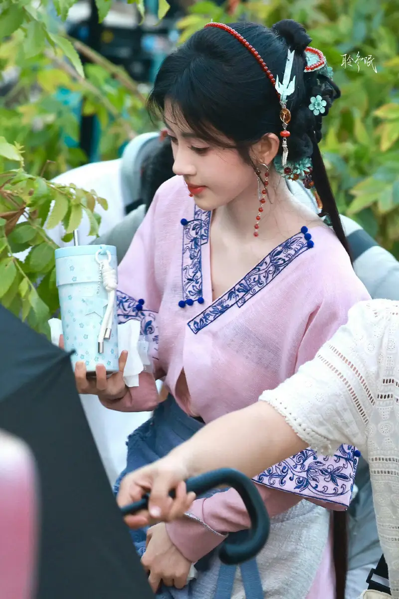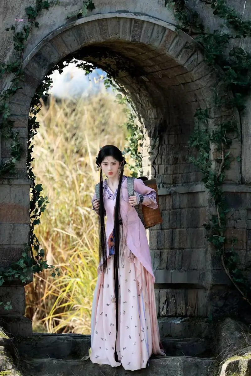 鞠婧祎穿新中式古風(fēng)襦裙清冷迷人 背著書箱表情靈動活潑