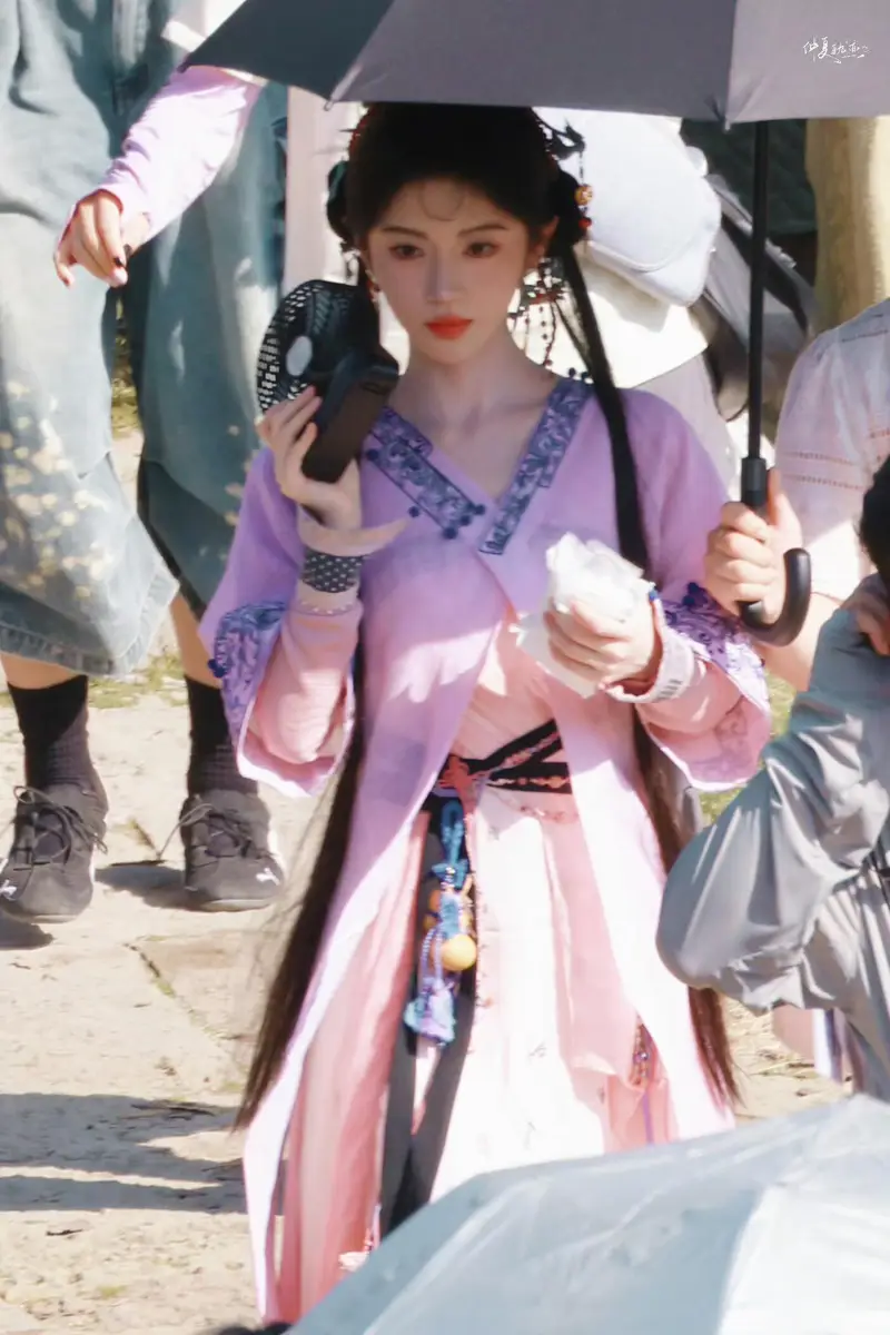 日前,鞠婧祎拍攝《來戰(zhàn)》路透曝光,照片中她穿著粉紫色相間的古裝,衣領(lǐng)設(shè)計很有新中式的韻味。