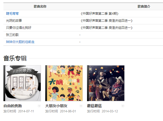 代表作品:睫毛彎彎、蘑菇蘑菇、大朋友小朋友、我的青春高八度