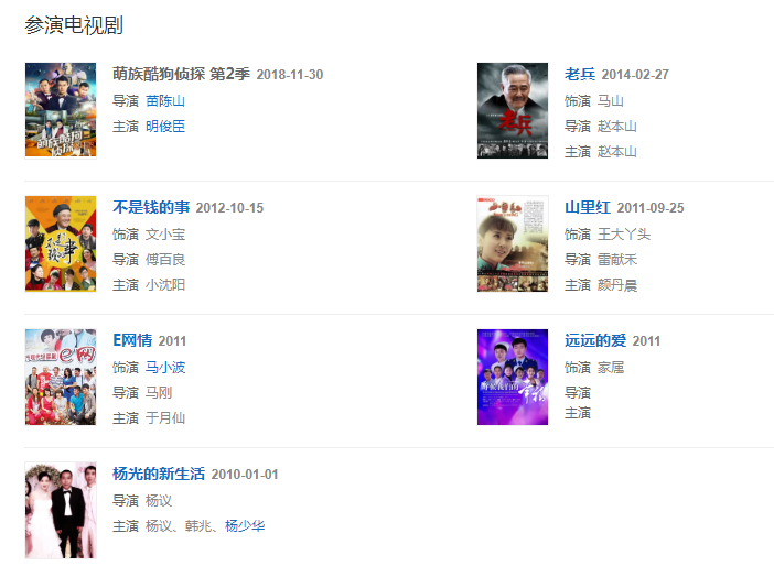 代表作品:夢想劇場、色囧之陰差陽錯、笑嗷喜劇人、飛檐走壁、楊光的新生活、老兵