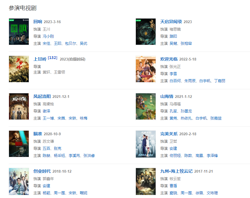 2008年,出演李少紅執(zhí)導(dǎo)的古裝情感劇《紅樓夢》,在劇中飾演邢岫煙的丈夫、薛寶琴的哥哥薛蝌。