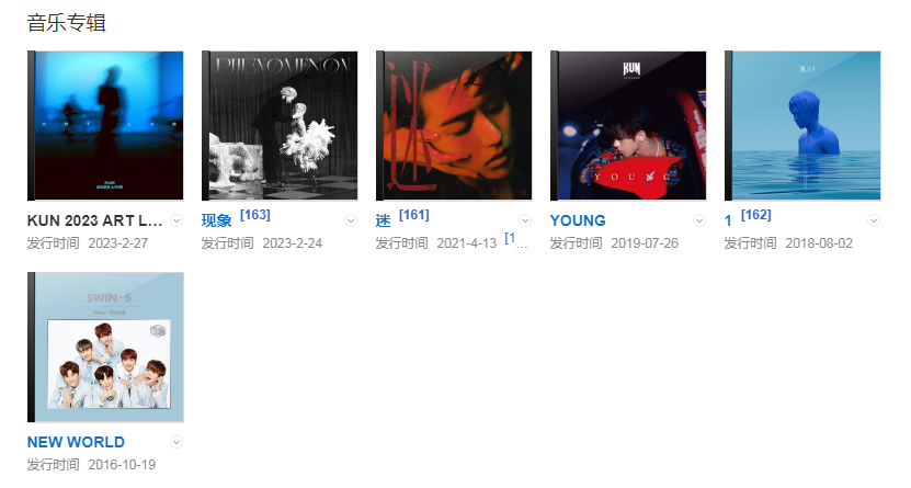 代表作品:重生、情人、Home、迷、YOUNG、沒有意外、蒙著眼、Wait Wait Wait、Pull Up、You Can Be My GirlFriend、Hard To Get、IT'S YOU