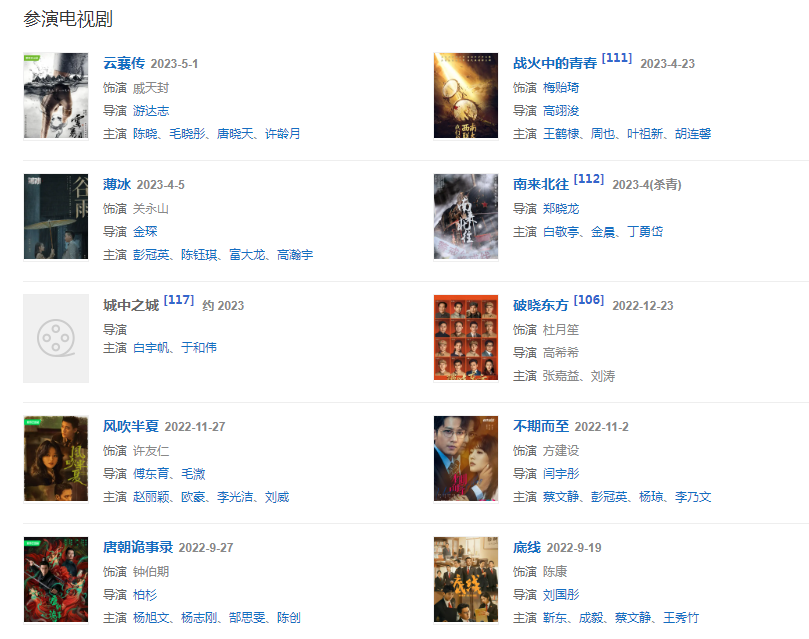 2021年,主演重大革命歷史題材電視劇《大決戰(zhàn)》 ;同年,擔(dān)任第八屆“文榮獎(jiǎng)”評(píng)委會(huì)評(píng)委。