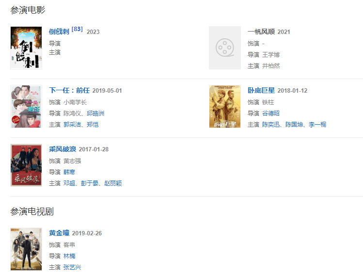 代表作品:模特、喜劇之王、年少有為、作曲家、不將就、嗯、耳朵、有理想、王牌冤家、不說、李白、老街、麻雀、臥底巨星