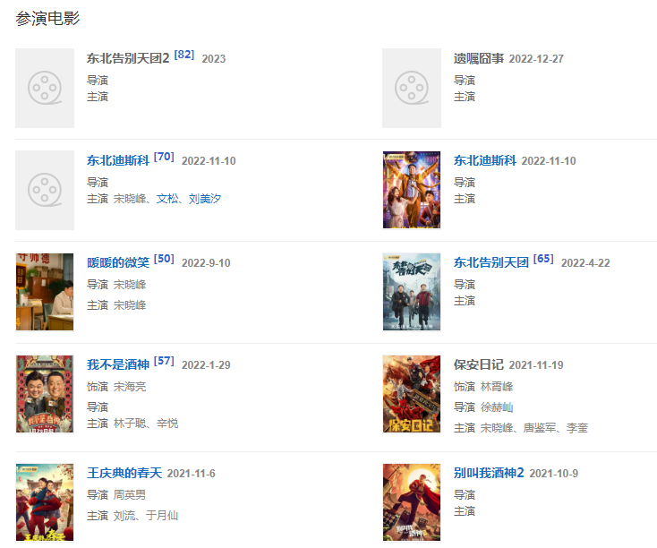在《歡樂喜劇人第三季》節(jié)目中,宋曉峰與其所在的遼寧民間藝術團憑借接地氣的表演風格,博得觀眾們的捧腹大笑。而在電影《超級大山炮之奪寶奇兵》中,他扮演了一個喜劇角色,將下跪、挨打等戲份認真地完成,帶給觀眾十足的笑料和包袱。