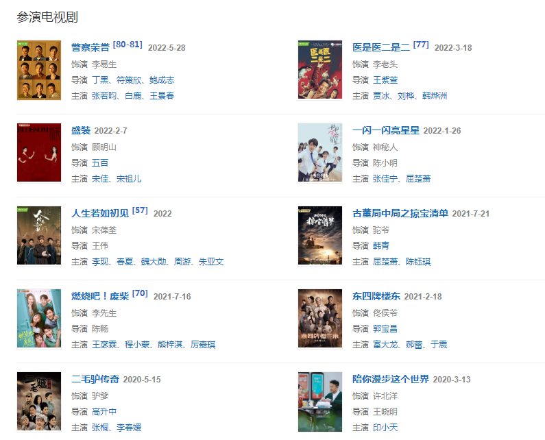 2022年,在丁黑導(dǎo)演執(zhí)導(dǎo)的《警察榮譽(yù)》中飾演李大偉的父親李易生。