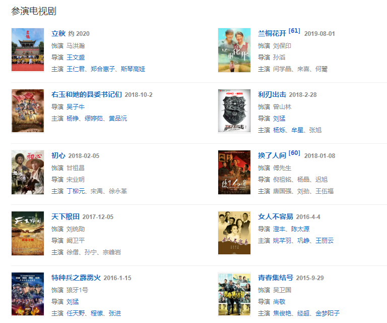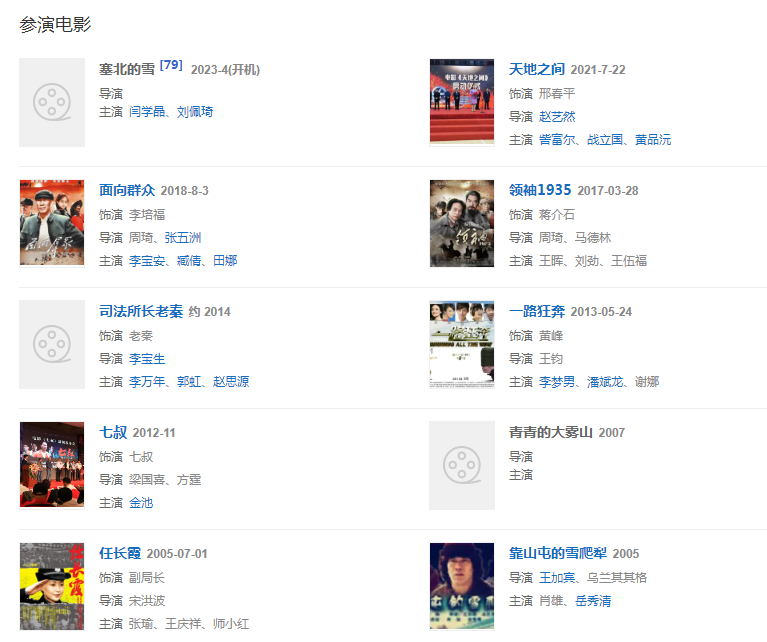 代表作品:七七事變、敵后武工隊、新四軍、施瑯大將軍、紅旗譜、都是兄弟、天下糧田、我的特一營