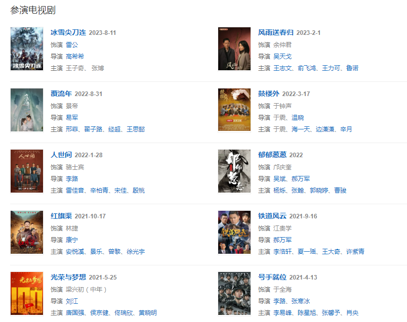 2020年9月4日,主演的軍旅劇《藍(lán)軍出擊》播出 12月13日,主演的檢察劇《巡回檢察組》播出。