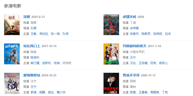 2021年,參加黑龍江衛(wèi)視的戶外冰雪體驗競技類真人秀節(jié)目《沸騰吧!冰雪》第二站;8月13日,主演的電影《深愛》上映;9月15日,特別主演的當代農村劇《在希望的田野上》開播 。