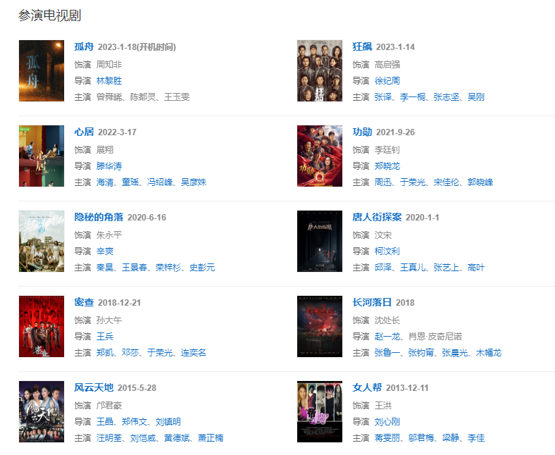2023年1月18日,參演的電視劇《孤舟》發(fā)布劇照并公布主演陣容。
