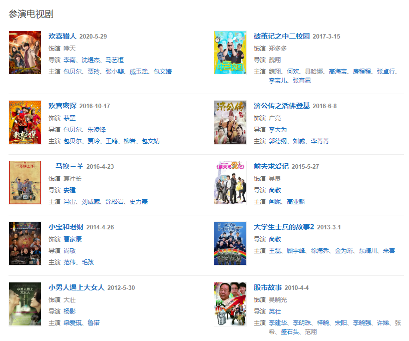 2016年在《濟(jì)公傳之活佛登基》中飾演廣亮。同年以助演身份參加《歡樂(lè)喜劇人第二季》。