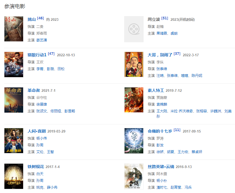代表作品:會(huì)痛的十七歲、老炮兒、小男人遇上大女人、丑女無敵、諜·蓮花、槍械師、戀愛SOS、那小子真帥、齊天大圣前傳