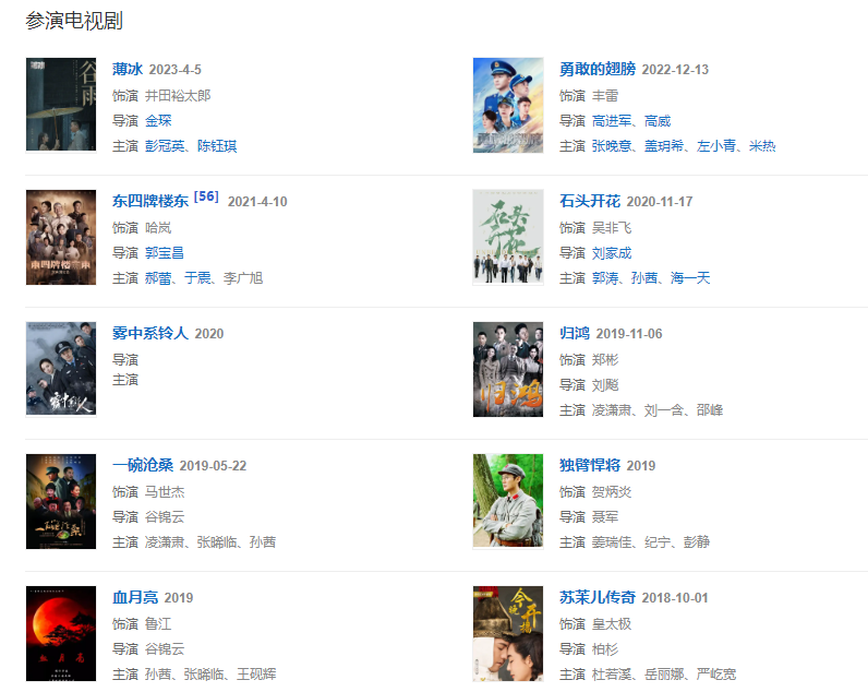 2023年4月5日,與彭冠英、陳鈺琪主演的年代諜戰(zhàn)懸疑劇《薄冰》播出,在劇中飾演井田裕太郎。