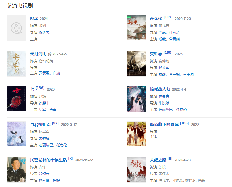 2019年8月,主演電視劇《民警老林的幸福生活》。