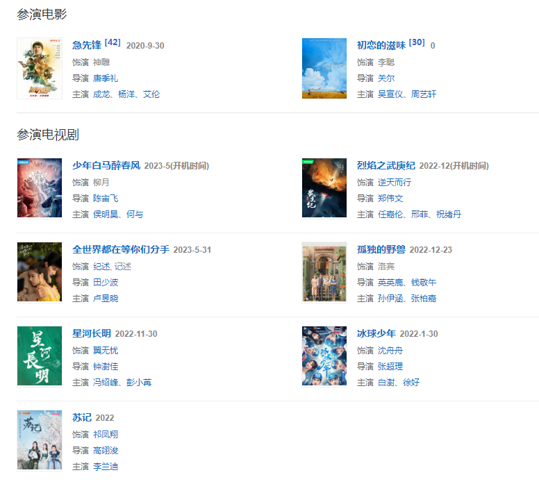 2020年9月30日,參演的首部電影《急先鋒》上映 。