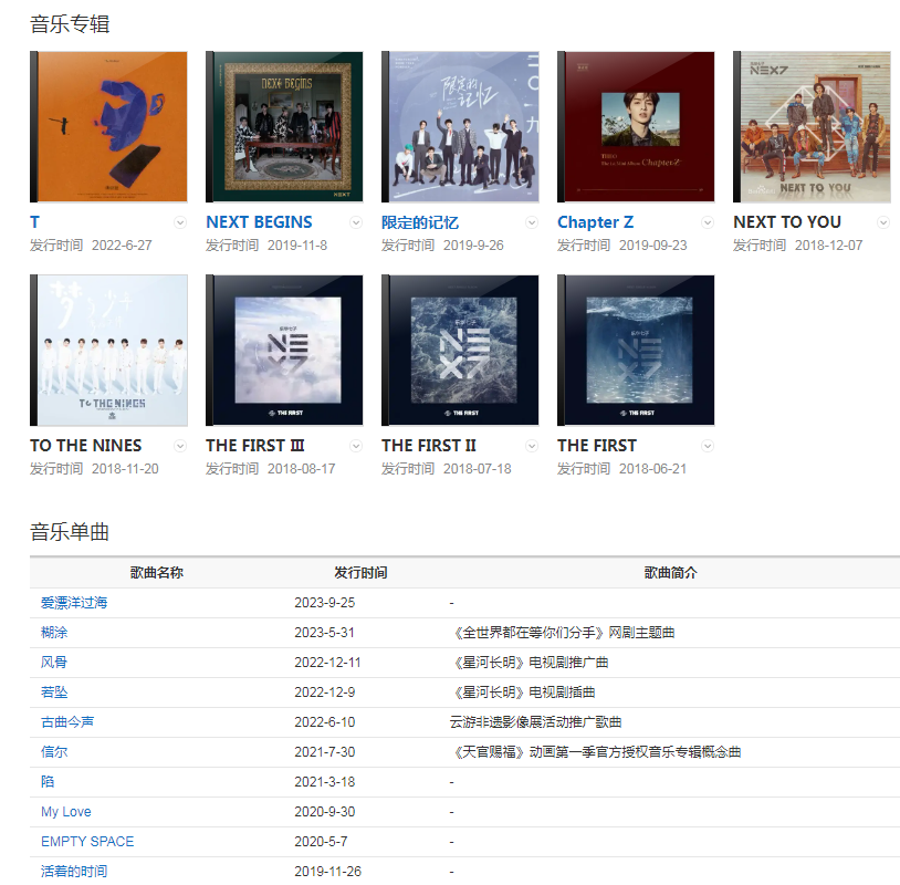 2019年9月23日,推出首張個人MINI專輯《Chapter Z》;10月17日,入選2019福布斯中國30歲以下精英榜。