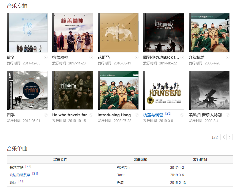 2007年,杭蓋樂隊(duì)發(fā)行了第一張同名專輯《杭蓋》。