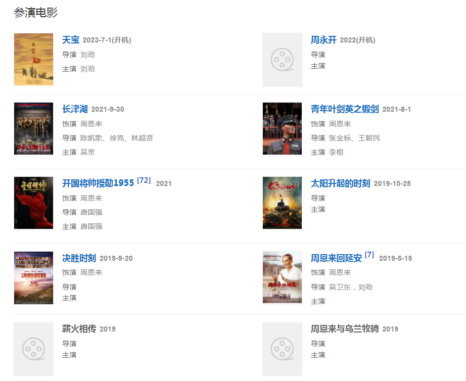 2000年主演電視劇《長征》,并且憑借其飾演的“周恩來”一角獲北京“電視劇輝煌30年”經(jīng)典熒屏形象獎(jiǎng)。