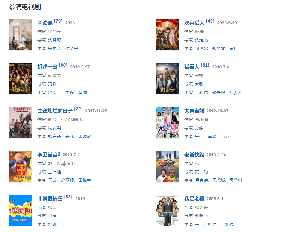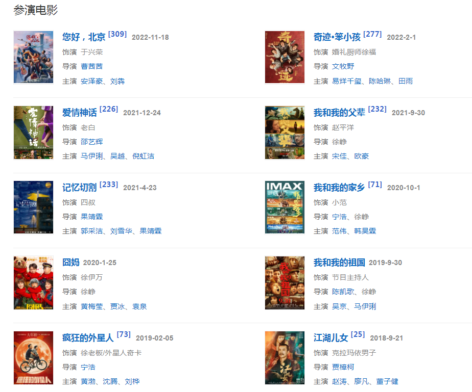 代表作品:人再囧途之泰囧 、港囧、人在囧途、我不是藥神、無人區(qū)、心花路放、催眠大師、春光燦爛豬八戒、李衛(wèi)當(dāng)官