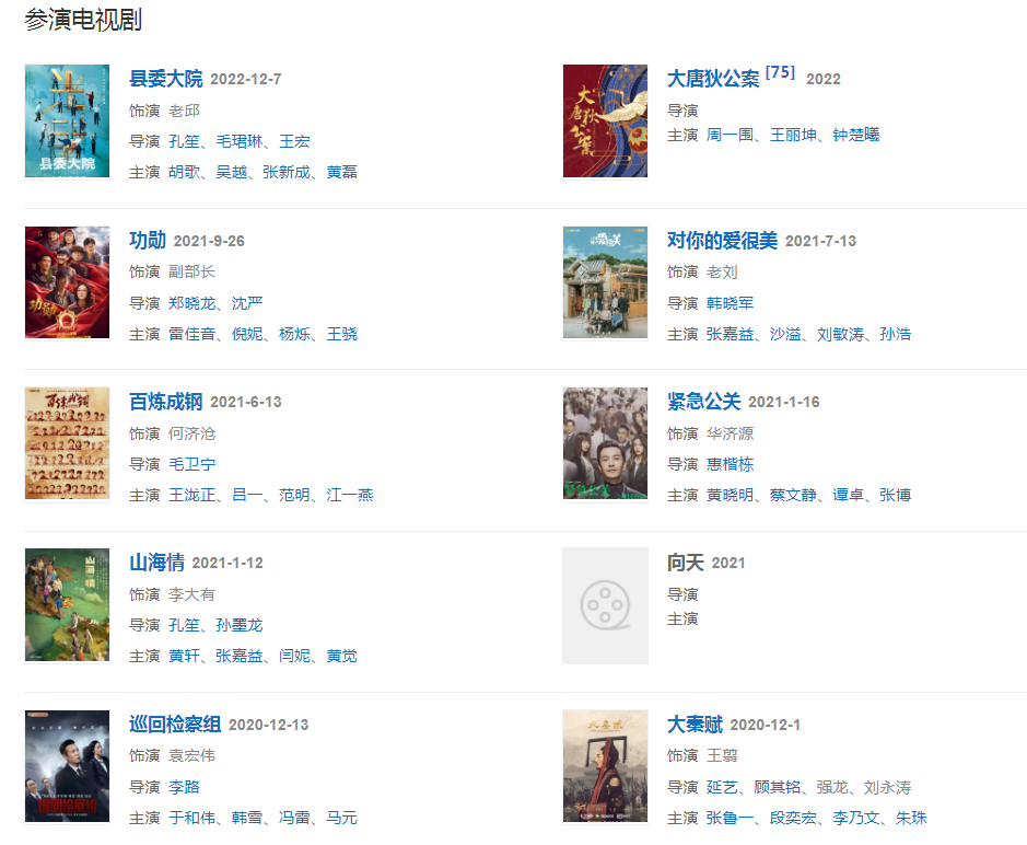 代表作品:大家族、緊急迫降、天下無(wú)賊、平凡的世界