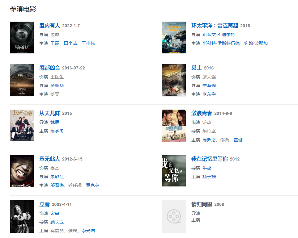 代表作品:闖關(guān)東前傳、偏偏愛上你、門·第、男才女貌
