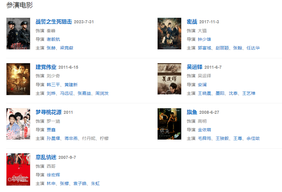 代表作品:毛岸英、二叔、滿倉進(jìn)城、咱家、百戰(zhàn)天狼