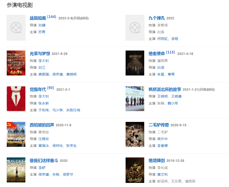 代表作品:亮劍、絕命后衛(wèi)師、覺(jué)醒年代、歡天喜地七仙女、絕密使命