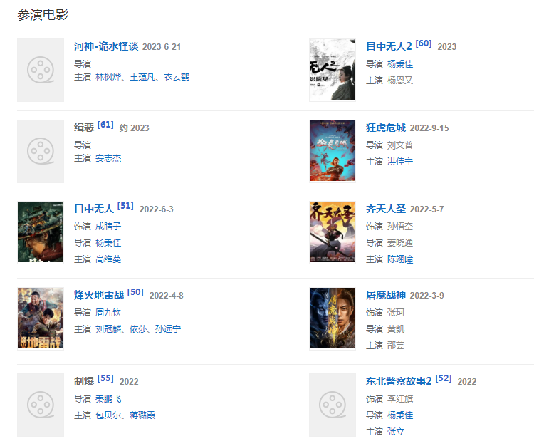 代表作品:《大漢十三將II烽火佳人》、大漢十三將之血戰(zhàn)疏勒城、少林寺傳奇、赤子威龍、新少林五祖