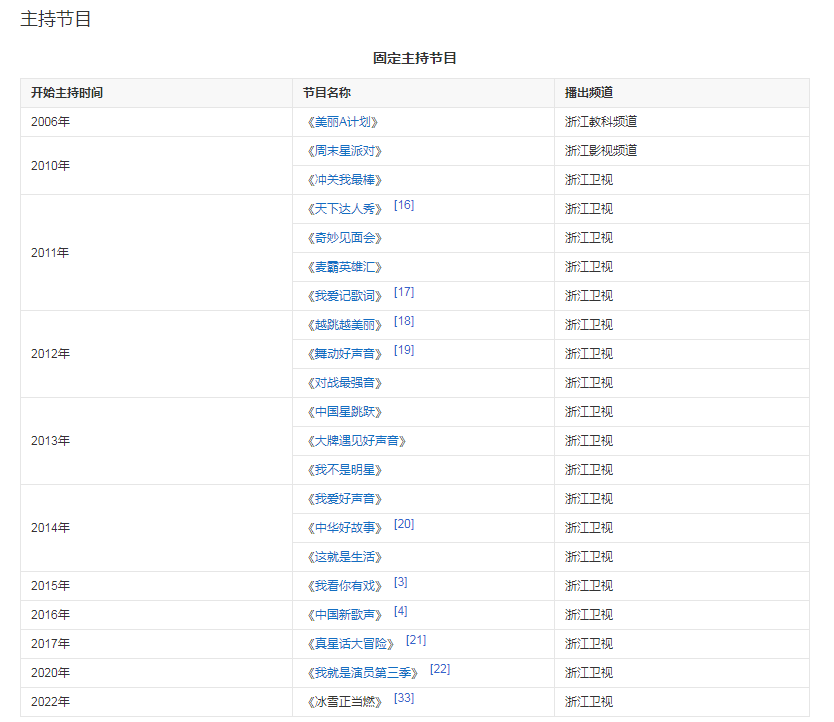 2016年,出任浙江衛(wèi)視勵(lì)志音樂評(píng)論節(jié)目《中國新歌聲》主持人。2017年,以補(bǔ)位嘉賓加盟 [12] 《花漾夢(mèng)工廠》第二季。