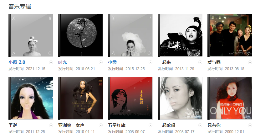 代表作品:小霞、小霞 2.0、時光、圣誕、亞洲第一女聲、一起來、等待、只有你