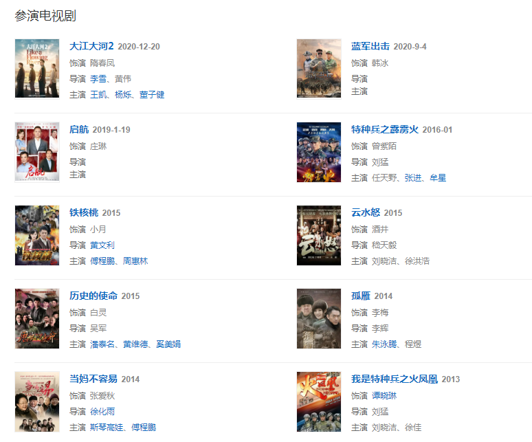 2020年9月4日,在現(xiàn)代軍事軍旅劇《藍軍出擊》中飾演韓冰;12月20日,參演的電視劇《大江大河2》播出,在劇中飾演隋春鳳。