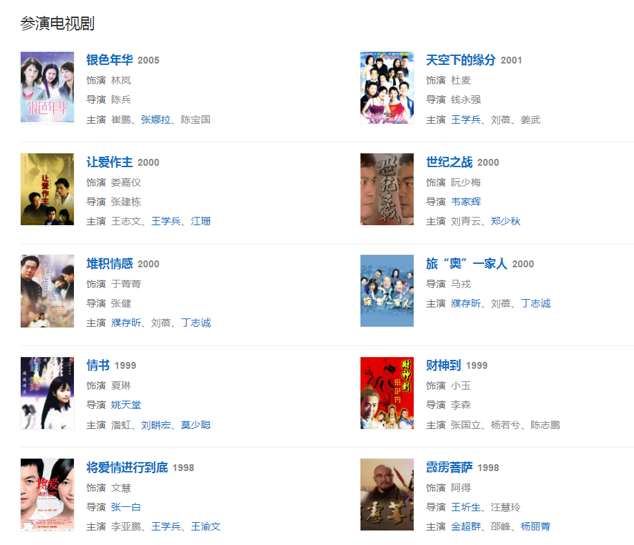 1994年,主演電視劇《同桌的你》進入影視圈。