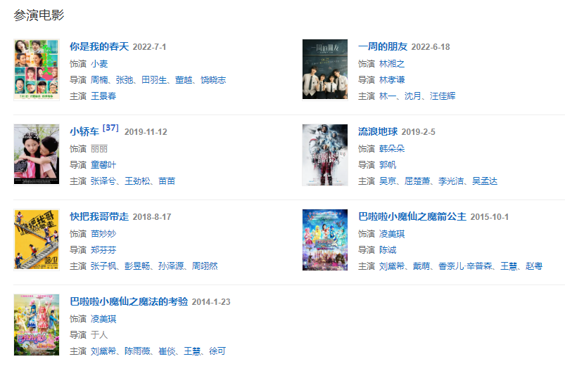 代表作品:流浪地球、我的!體育老師、少年派、小別離、初戀那件小事、開端