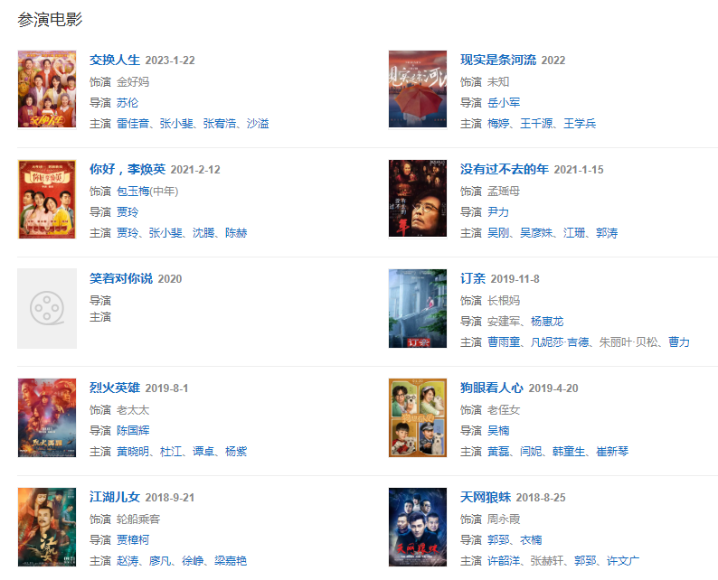 代表作品:山林中頭一個(gè)女人、過年、無人喝彩、小巷總理、裸婚時(shí)代