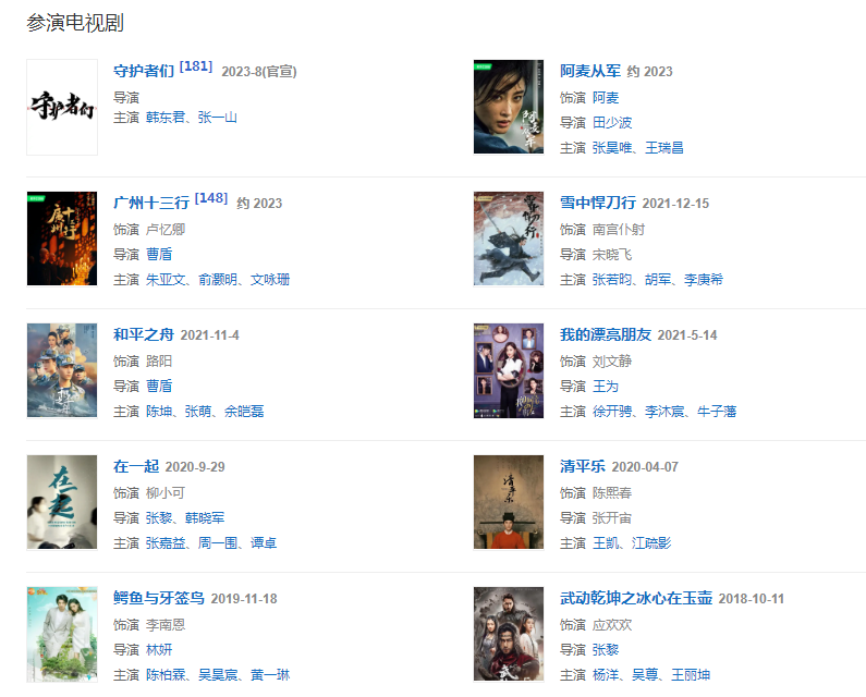 代表作品:太子妃升職記、愛情進化論、武動乾坤之英雄出少年、中國機長、從你的全世界路過、鮫珠傳、建軍大業(yè)、鱷魚與牙簽鳥