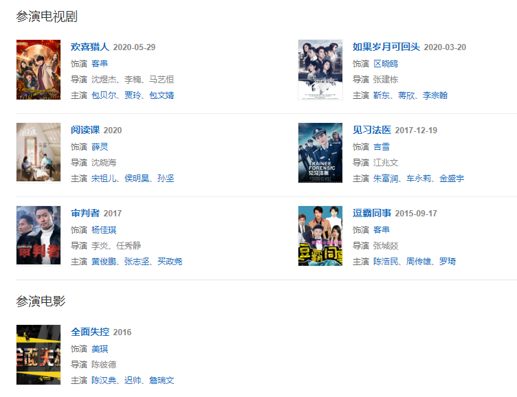 代表作品:等的人、冰、見習(xí)法醫(yī)、如果歲月可回頭