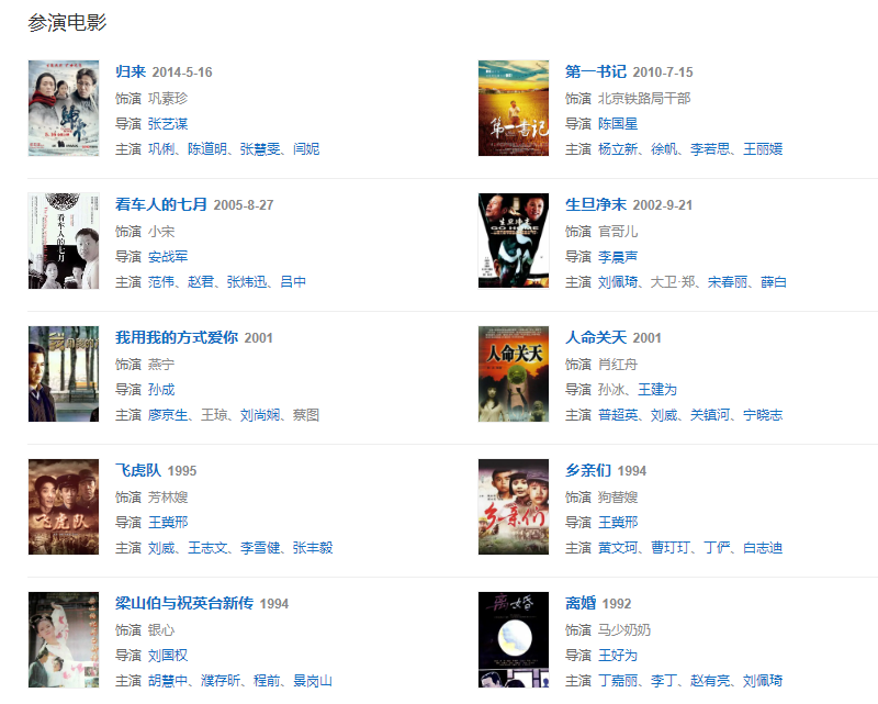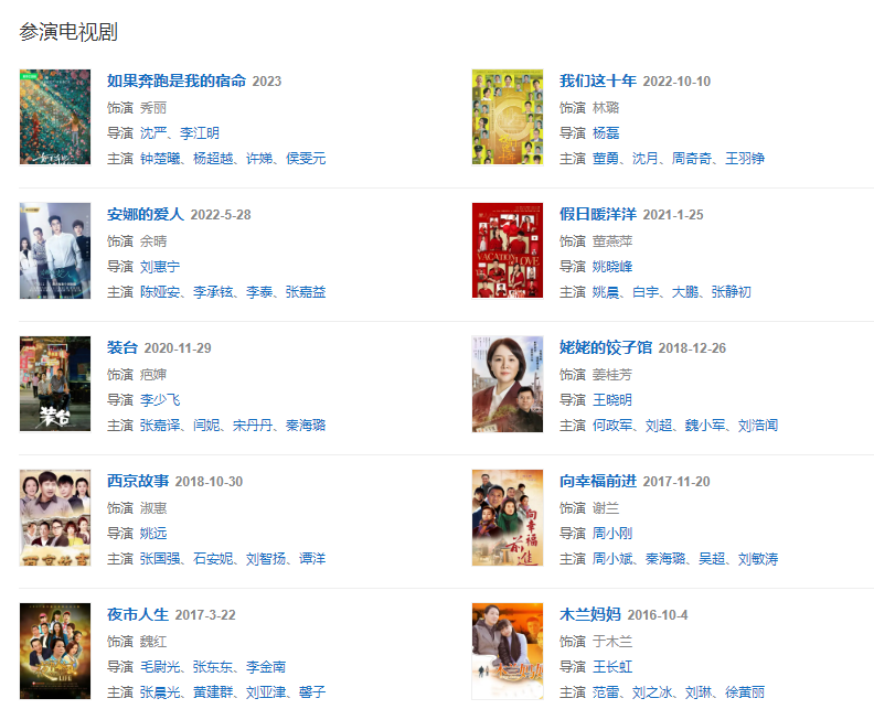 代表作品:外來妹、半路夫妻、婚姻的敵人、大工匠、婚變、復(fù)婚、葉落長安、咱家那些事、女刑警李春春、天倫