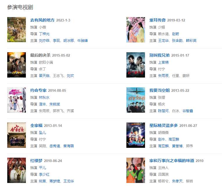 代表作品:黃金大劫案、紅樓夢、我要當(dāng)空姐、全家福、別叫我兄弟、重耳傳