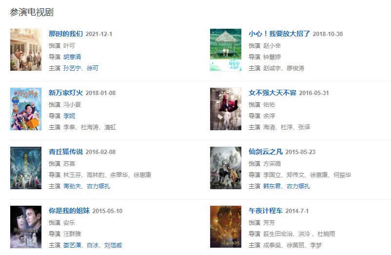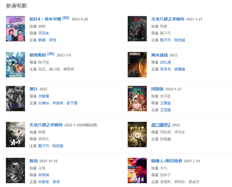 2016年參演電視劇《青丘狐傳說》、《江城三月》 和電影《發(fā)條城市》、《幸運是我》。