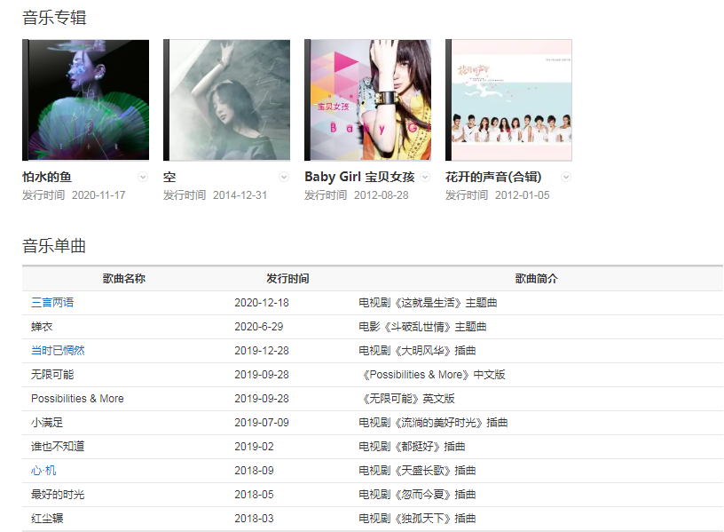 2020年,發(fā)行音樂專輯《怕水的魚》 ,擔(dān)任實境旅行美食慢綜藝節(jié)目《蜜食記第六季》常駐嘉賓。