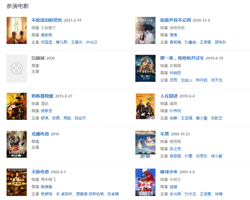 代表作品:我們的純真年代、戰(zhàn)長沙、苦咖啡、家常菜、中國式離婚、人在囧途、大約在冬季、爺們兒