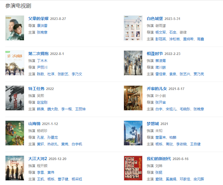 代表作品:大江大河、走火、深海利劍、錯(cuò)點(diǎn)鴛鴦、絕地刀鋒、異鎮(zhèn)、新還珠格格、戰(zhàn)地花開