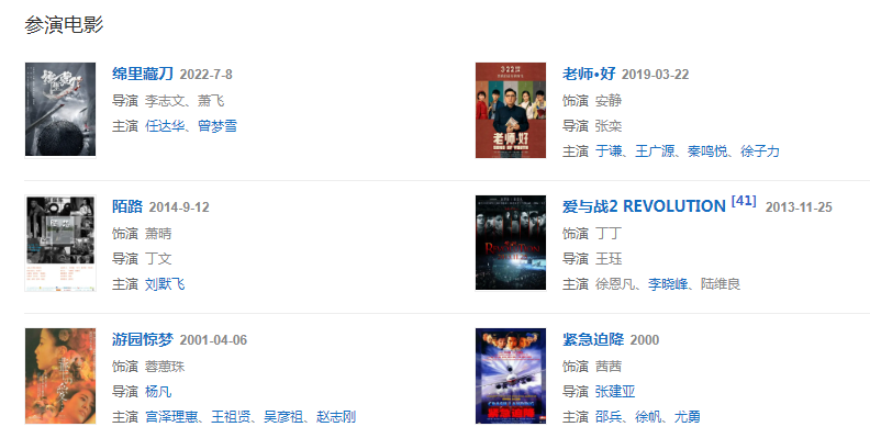 1999年,參演個(gè)人首部民國劇《上海滄?!罚瑥亩竭M(jìn)入演藝圈 。